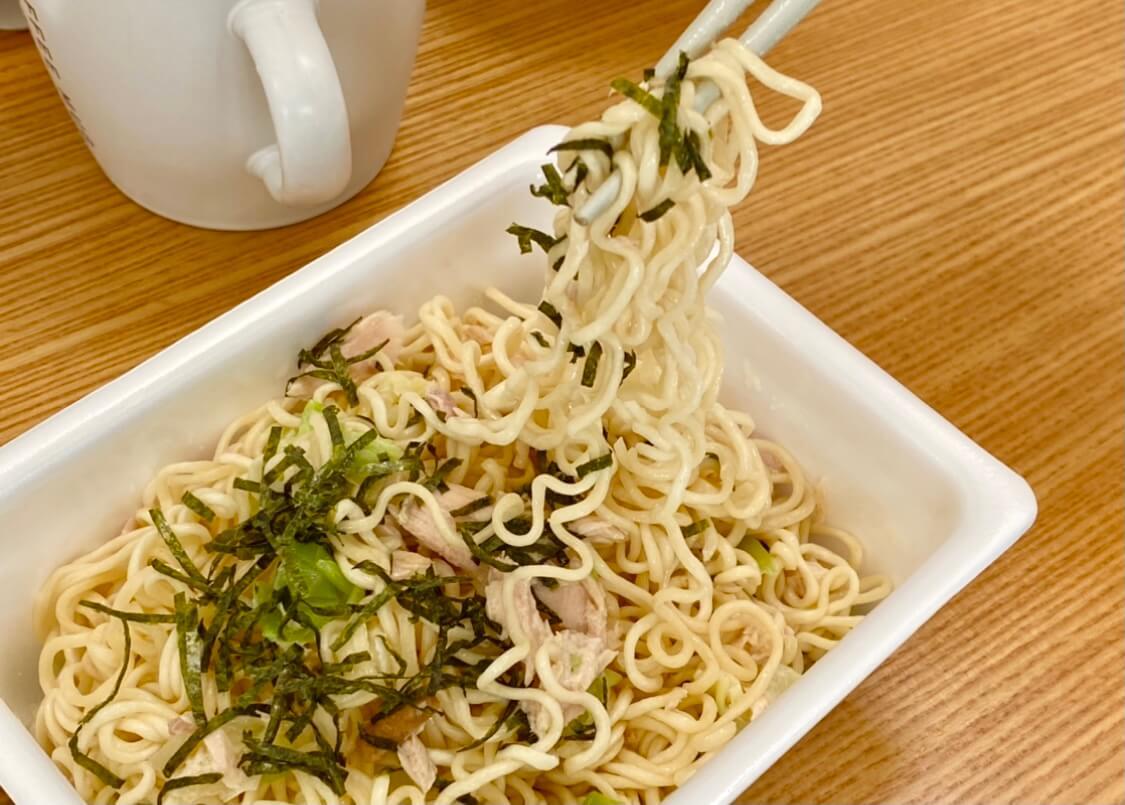 マヨネーズと醤油が麺によく絡み、相性抜群。お箸が止まらない!