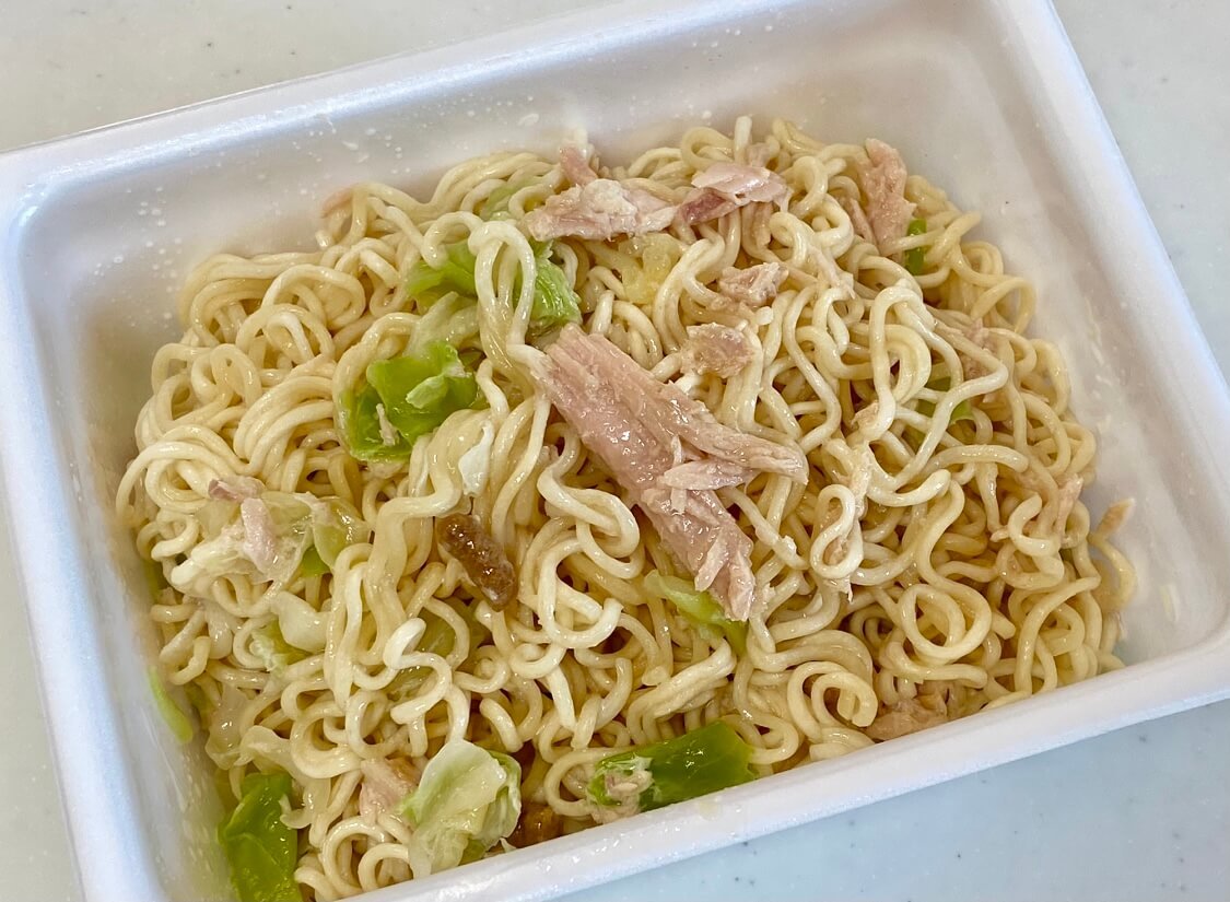 お肉ではなくツナなので、家庭で作る焼きそばよりもさっぱり食べられるのがいいですね。はい、あっという間になくなってしまいました♡