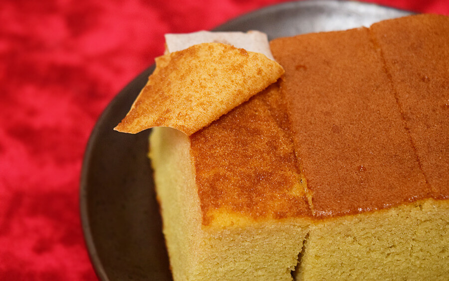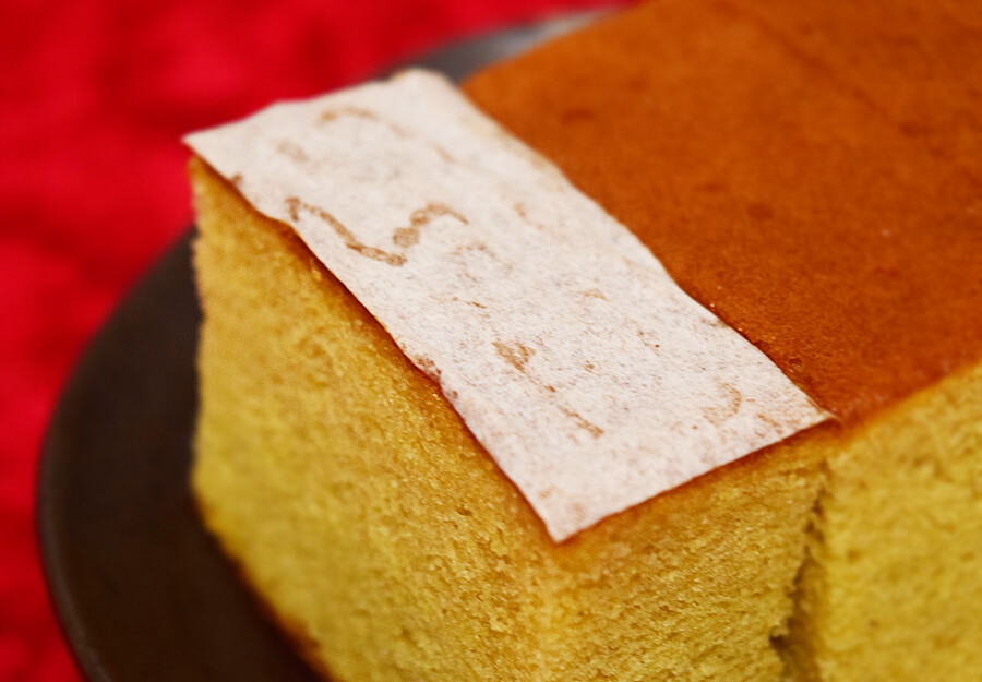 カステラ底面には、白い紙がくっついていますので、食べる時に剥がしてみましょう。