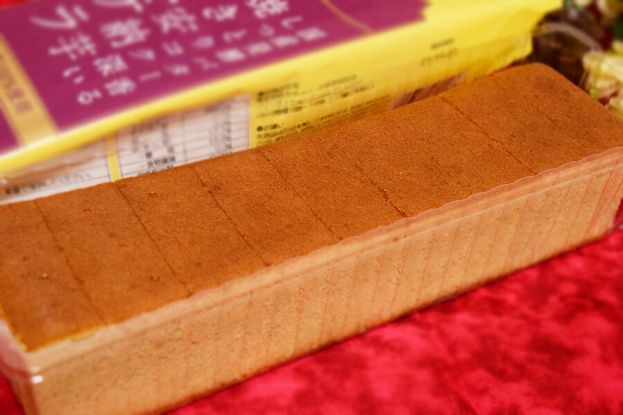 カステラは9等分にカットされていました。食べる時に包丁を取り出さなくていいのは、地味に嬉しいポイントですよね。