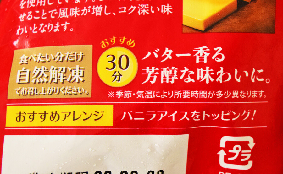 食べたい分だけを自然解凍していただきます。自然解凍30分ほどでバター香る芳醇な味わいになっておすすめのようですね。