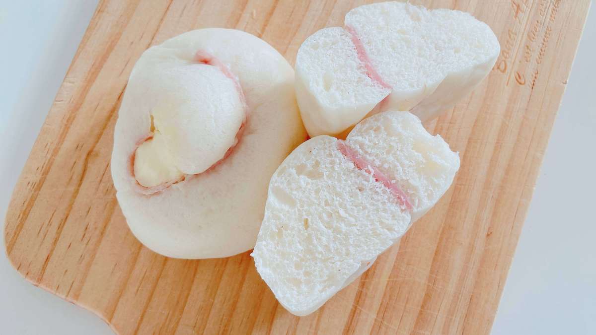 切ってみるとこのような感じ。ハムもチーズも少なめに感じたものの、パンの生地そのものにしっかりと味がついているので最後まで満足のいく味のまま食べることができました。子どものおやつにももってこいですよ!