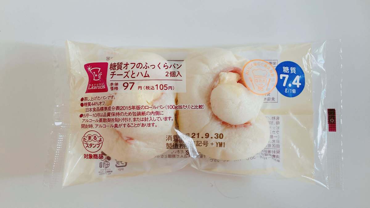 こちらは「糖質オフのふっくらパン チーズとハム」2個入りで税込105円です。こちらもハムとチーズが入っているにもかかわらず、一個当たりの糖質は驚愕の7.4g。