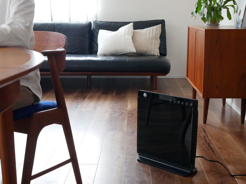 また、本体の奥行13cmの薄型フォルムは、リビングのどこに置いても邪魔にならず、それでいてスタイリッシュに見せてくれるのが◎! 冬が過ぎて収納する際にも、場所を取らずに助かるサイズ感です。