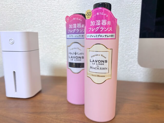 今Twitterなどで人気のラボンのフレグランスウォーターは種類の多さや香りの良さに定評あり。個人的にはピーチジョンとのコラボの香りが好きなので、加湿器と楽しみたい!