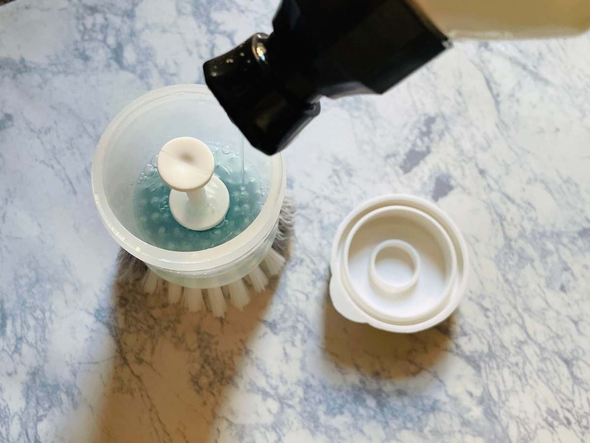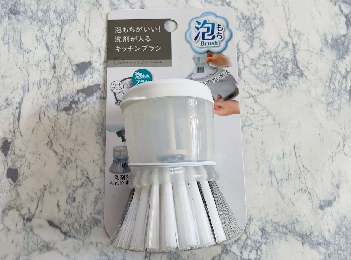 セリアで購入した「洗剤が入るキッチンブラシ(税込110円)」です。