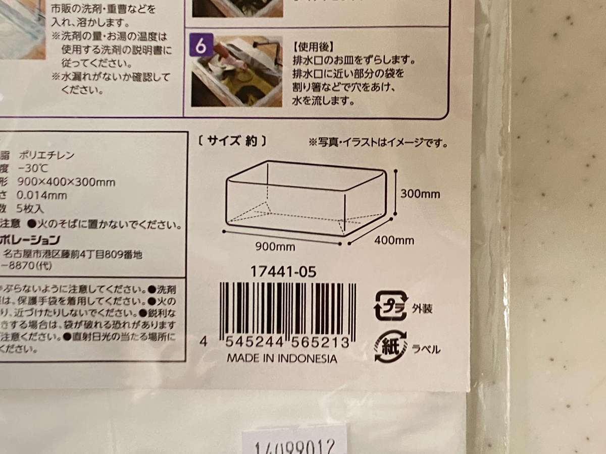サイズはW900×D400×H300mmとかなり大きめです。底マチなので、たっぷりつけ置きできます。