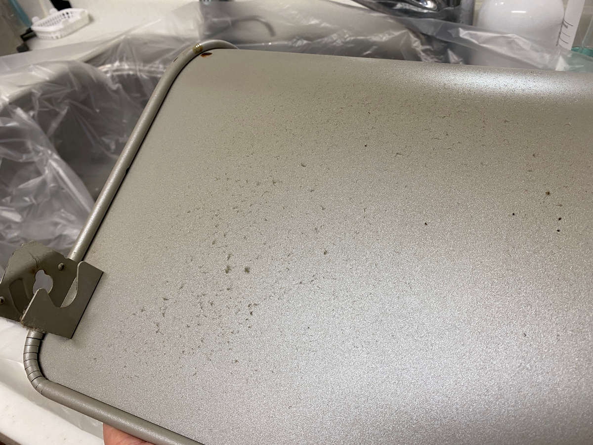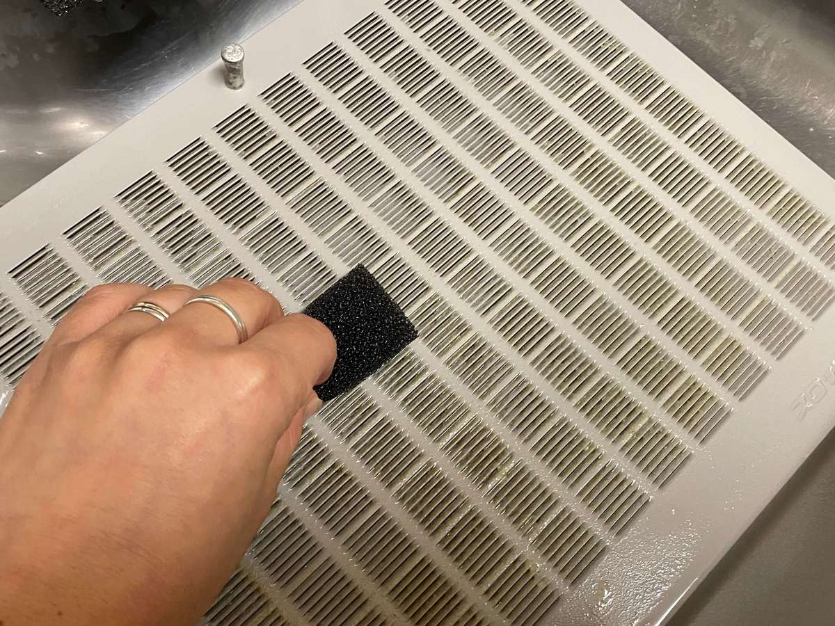 つけ置き後は、お湯で洗い流せば終了。ですが、さすがに1年分の汚れはつけ置きだけが落ちなかったので、ウタマロ洗剤を使って仕上げ洗いをしました。