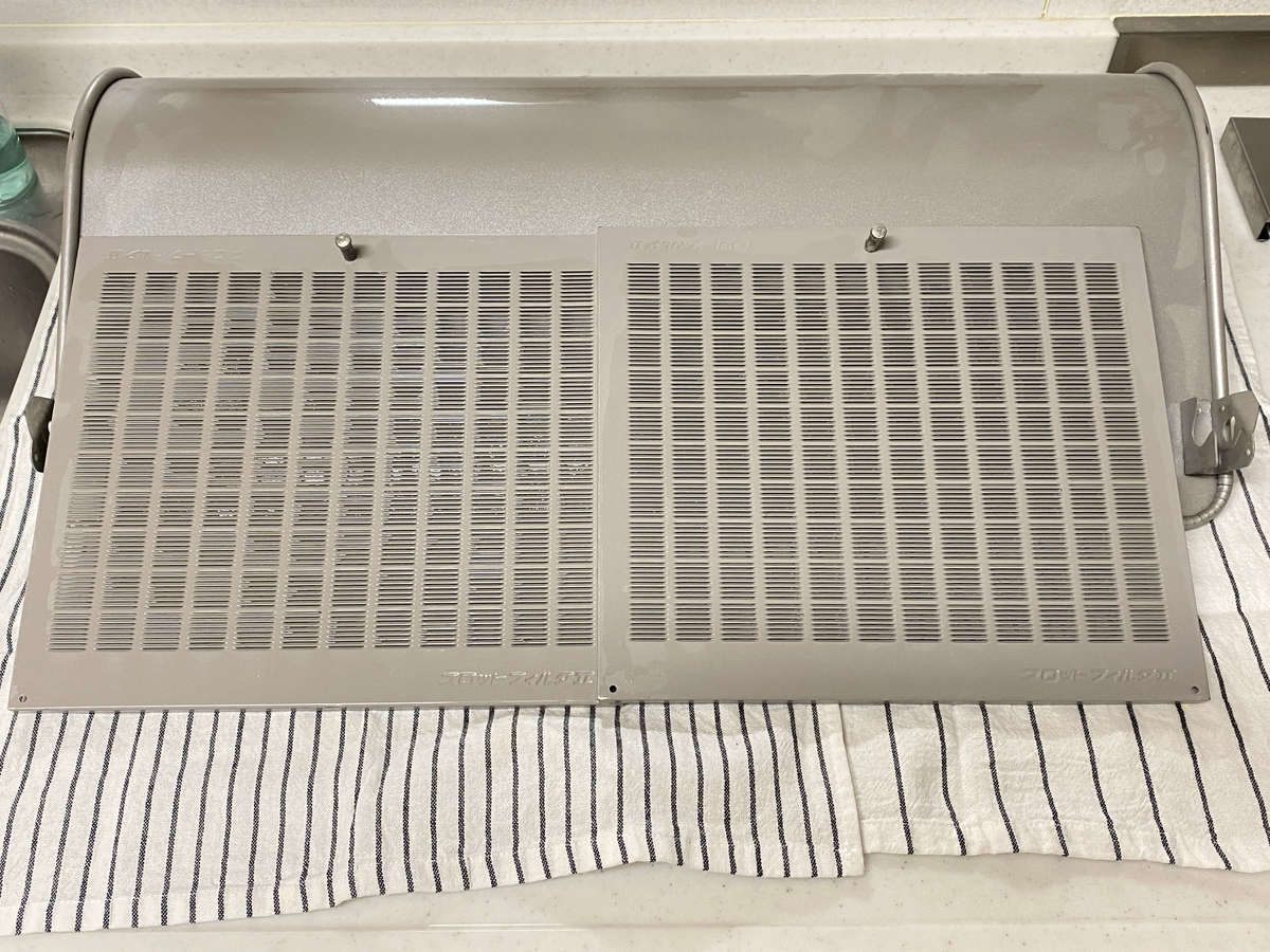 去年の大掃除以来、手付かずだったため、フィルターは油でかなりギトギトになっていました。