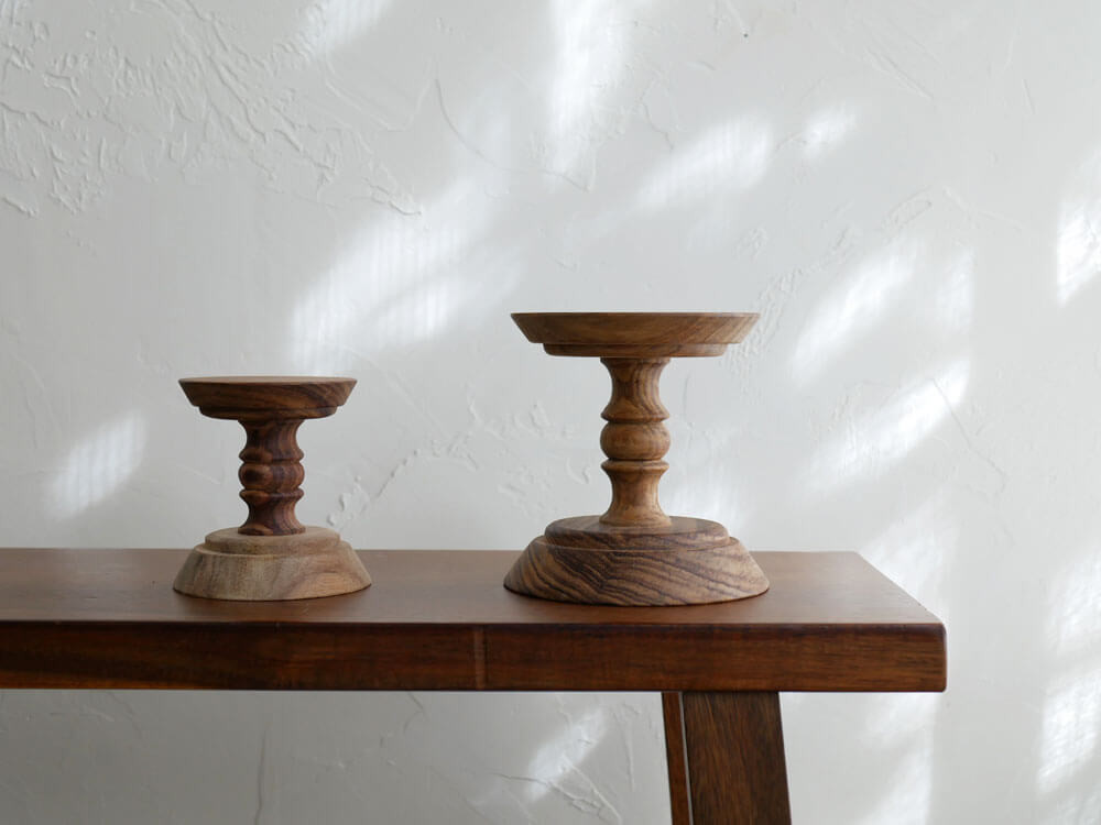こちらは、既に販売中のキャンドルを飾るシーシャムウッド製のスタンド。