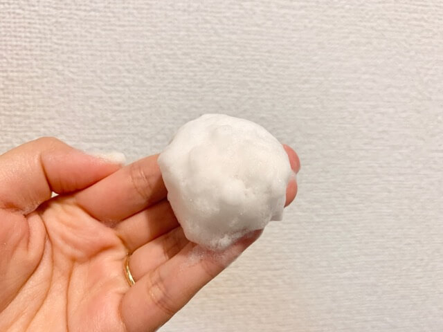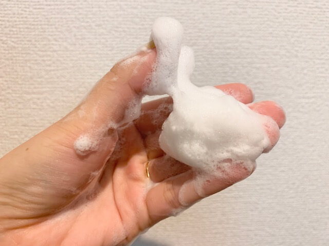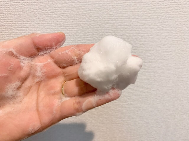きめ細かい、もっちりした泡が肌に密着。泡を押し付けたり、転がすだけでも洗浄されている感じがしっかりあります。