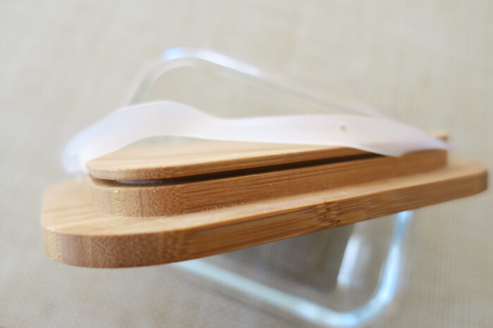 バンブーの蓋にも取り外し可能なパッキンが付いています。取っ手が無いのでがっちりと閉まることはありませんが、保存容器としては充分です。