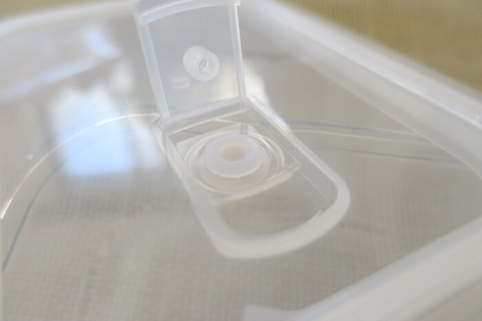 そして、蓋にはバルブが付いています。電子レンジであたためるときはこちらを空けておくことで、蓋をしたまま使うことができます。