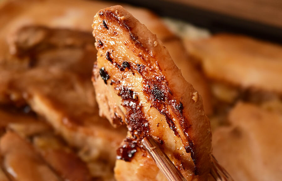 ふとチャーシューの裏面をみると、甘いタレが焦げたような跡も。これがまたたまりませんね……!