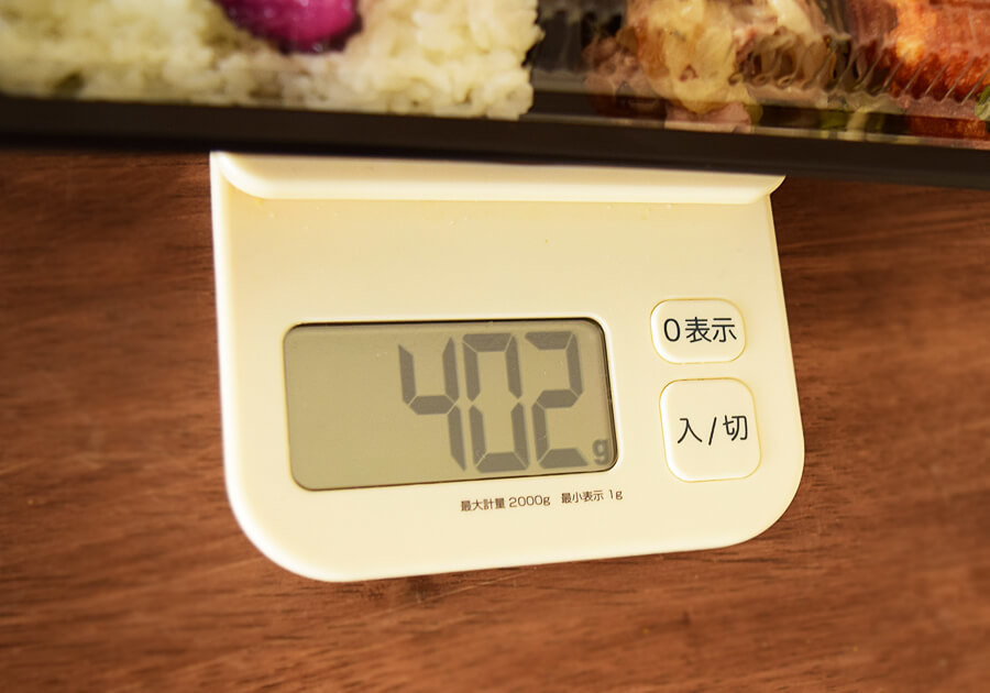 300円台と激安弁当のわりにはボリューム感があったので、重さを測ってみました。