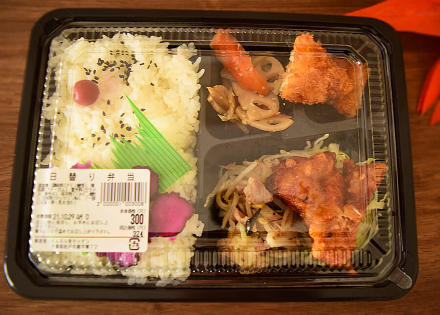 今回私が手にした日替わり弁当は、唐揚げや白身魚フライ、きんぴらごぼうなどが入っていましたが、公式Twitterを見る限り、おかずの種類は大幅に変わっているようです。