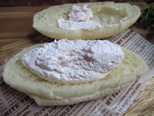 食べてみると、米粉を使った白いパン生地はしっとりやわらかで、もちもち食感! ちなみに米の粉を使用していますが、お米の味はしません(笑)。