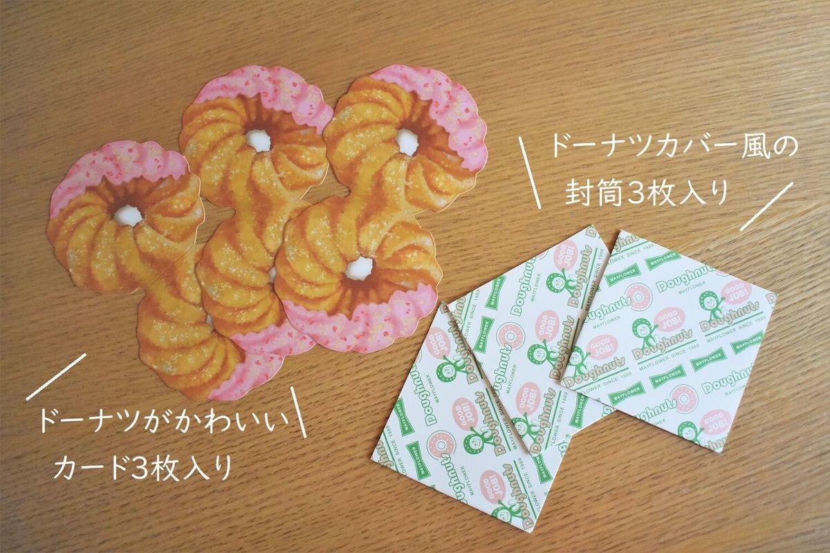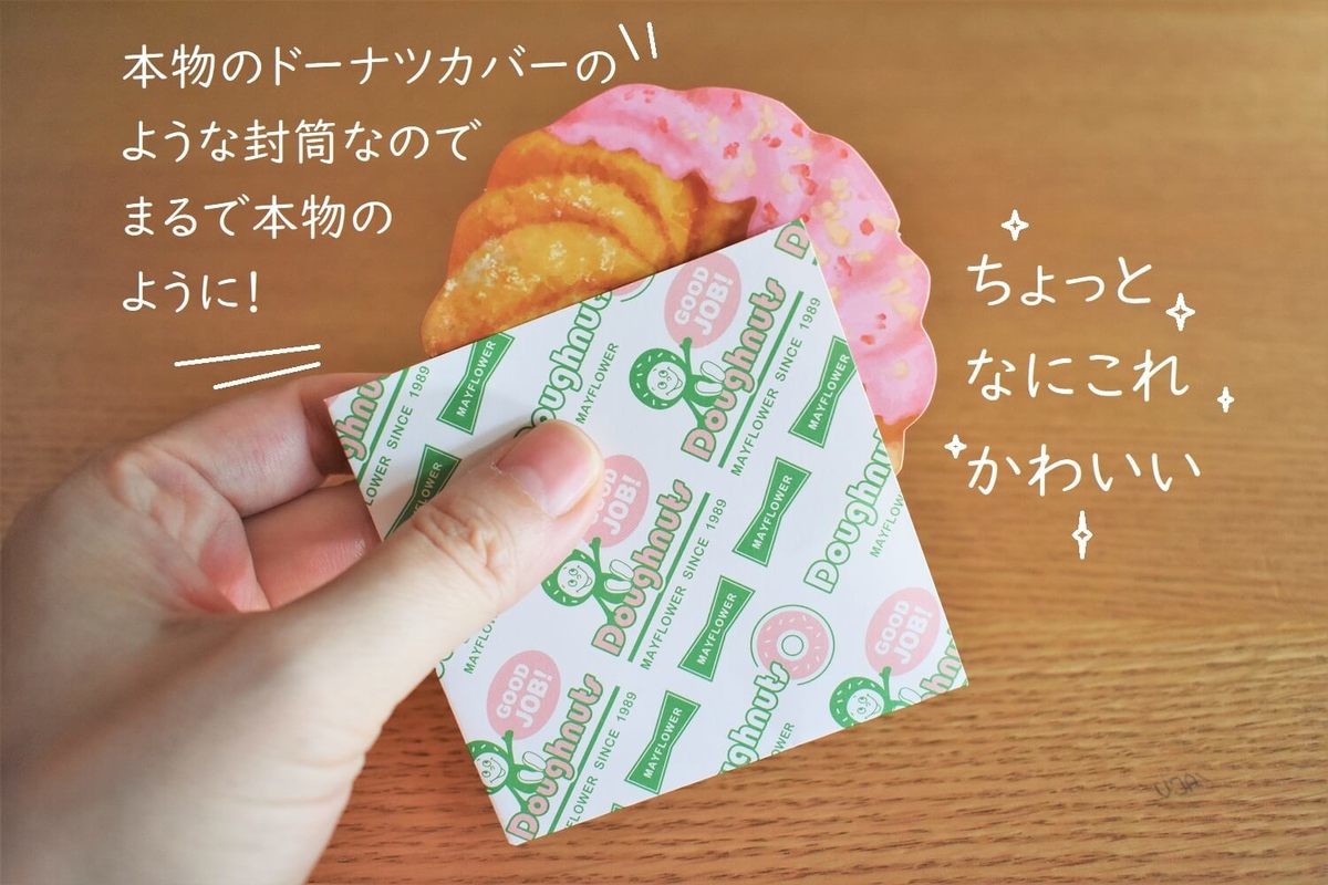 とってもかわいいですよね。封筒の端がくっついていないので、ドーナツカバーのようになっていて、ドーナツを持つととってもリアル!