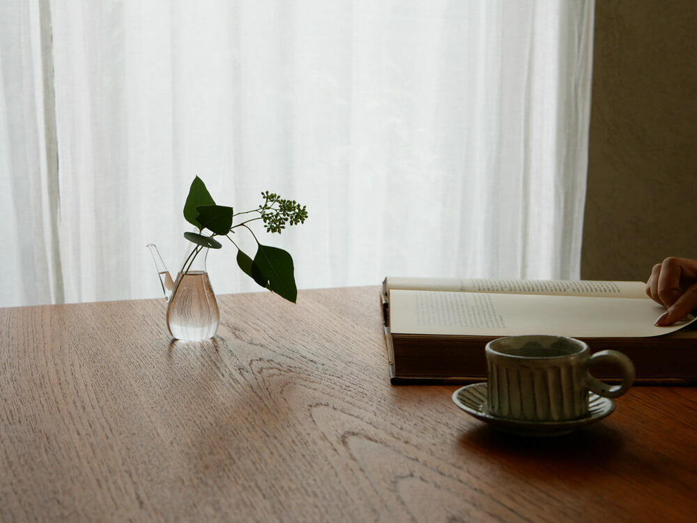 ひとめ見ただけでは“醤油差し”には見えないので、一輪挿しにも最適。 柔らかいカーブとほどよく狭い口径が、一輪のお花を美しく飾ってくれるんです。