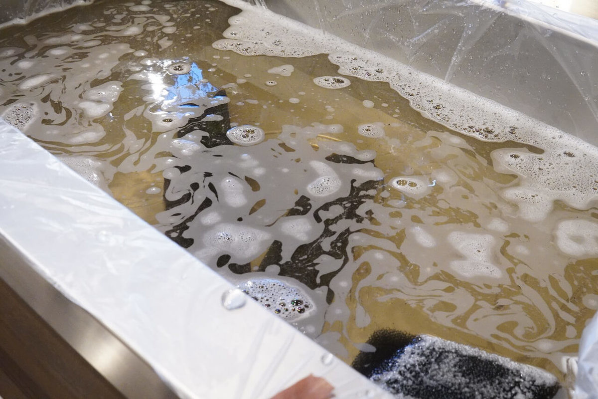 袋状のつけ置き洗い袋を使うことで、汚れた水をシンクに直接つけることなくつけ置き掃除ができ、シンク自体は汚れずに済みますよ!