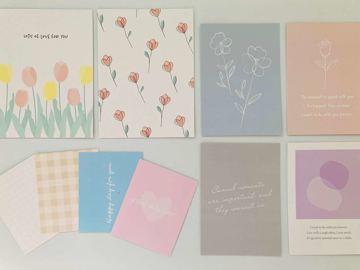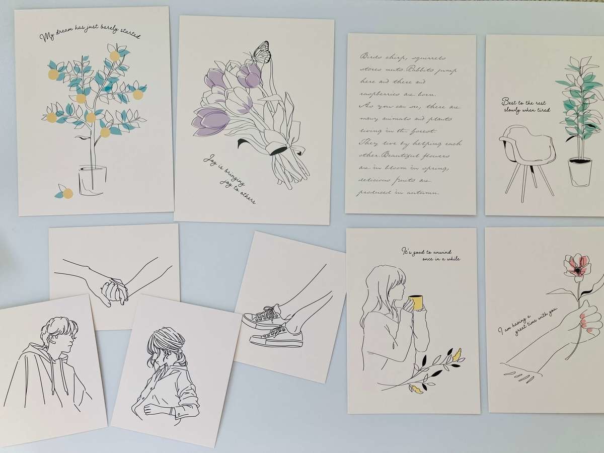 インテリアカードは全部で2種類。「インテリアカードB 110円(税込)」もありますよ。こちらは淡いイラストやモチーフが描かれています。カードはAと同様で大2枚、中4枚、小4枚の10枚入りです。