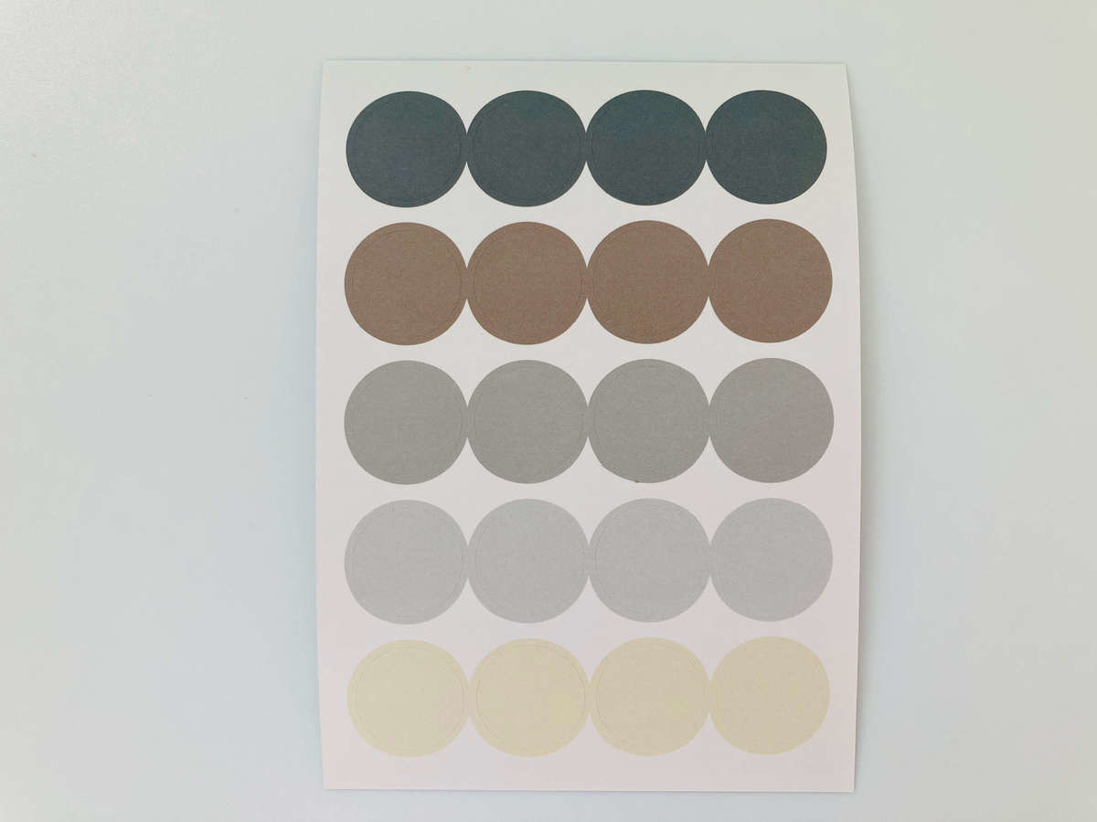 こんなに可愛いだけでもお得ですが、A、Bともに丸シールも20枚付いてきます!イラストの雰囲気に合わせて、くすんだ落ち着きのあるカラーがセレクトされていました。シールとセットで壁に貼り付けて使いましょう。