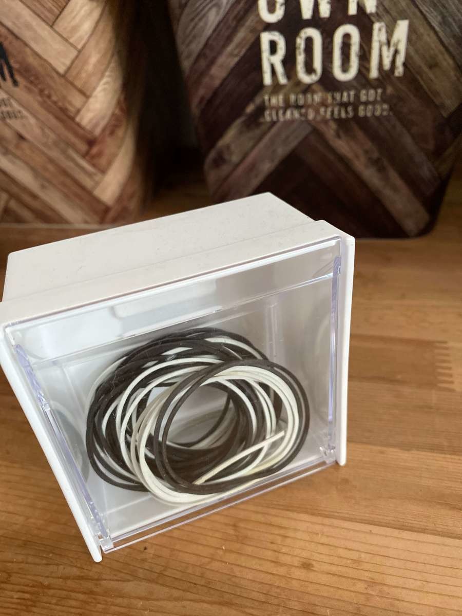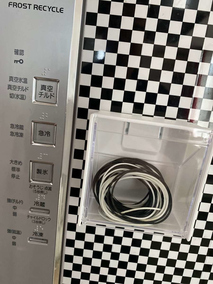 輪ゴムは、主にキッチンで使うことが多いので冷蔵庫に貼り付けています。