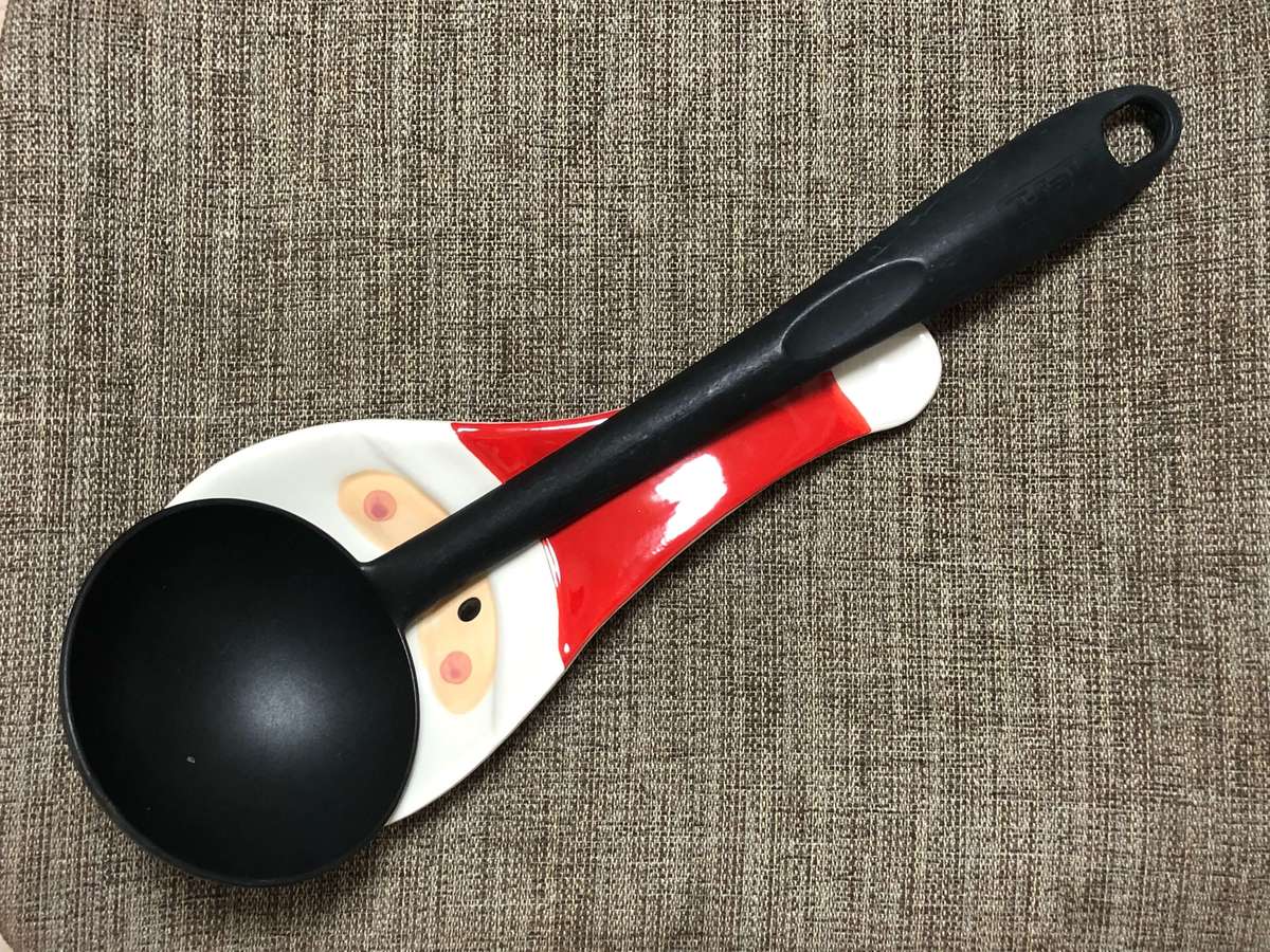 同じくキッチン用品からは、おたまホルダーです。料理中のおたまの置き場に困る人も多いはず。 ただ、こちらすごくかわいいのですが熱々のおたまを置く時には、少し躊躇してしまいました。