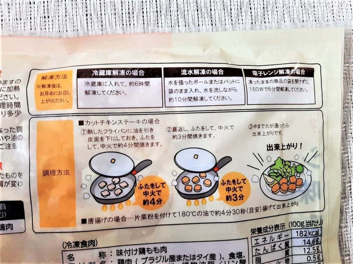 チキンステーキは解凍してフライパンで両面焼くだけで完成だそうです。