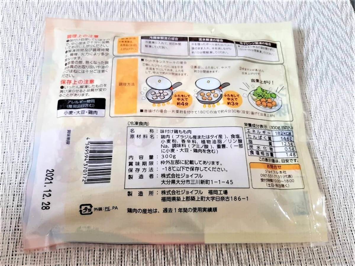 今回は、ジョイフルの味付け鶏もも肉を購入しました。 他にもハンバーグてりやきペッパー・鶏のなんこつ唐揚げなどのおなじみメニューの冷凍食品がありましたよ♪