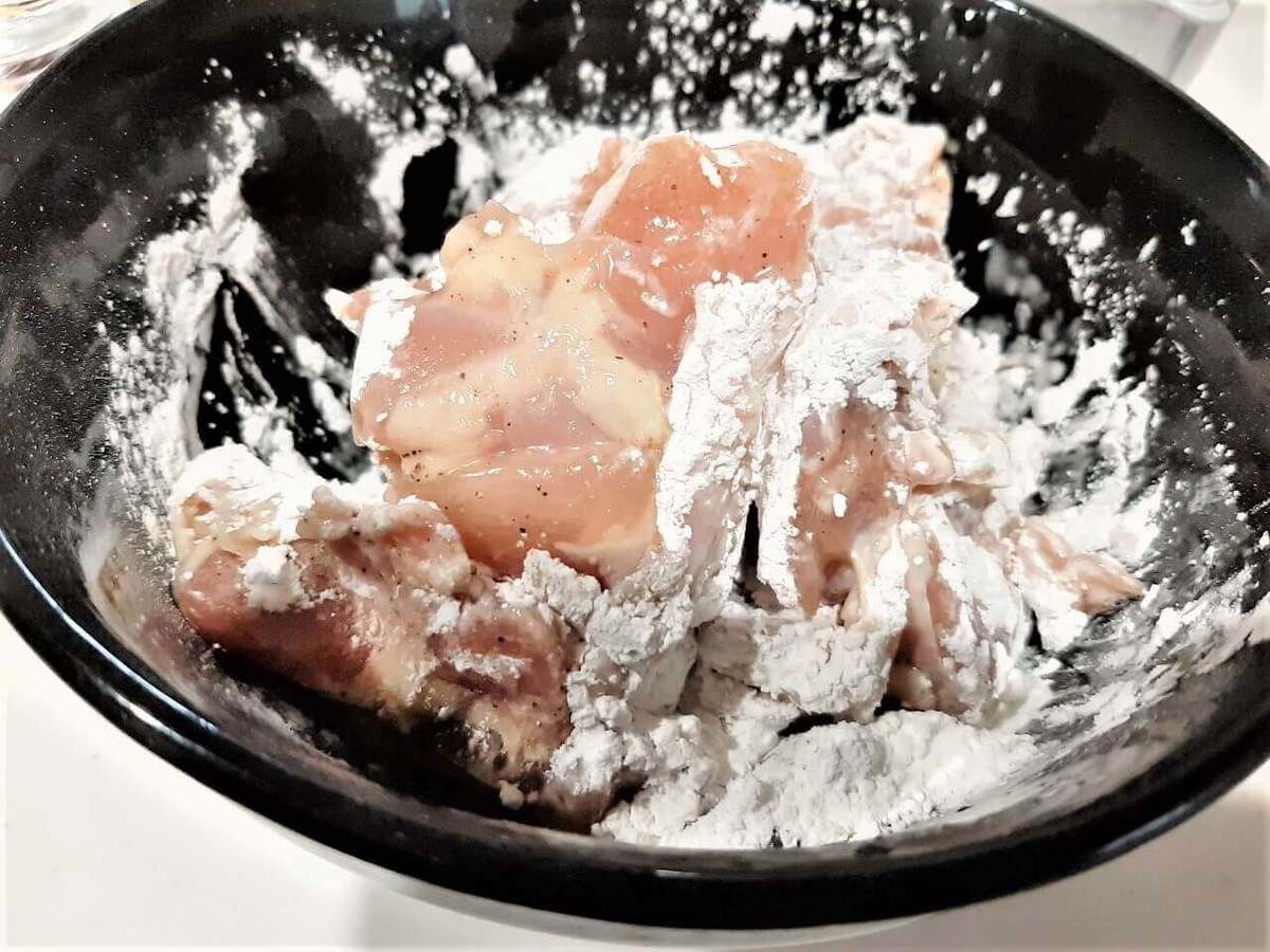 ひとつひとつカットされているので、そのまま片栗粉にまぶします。