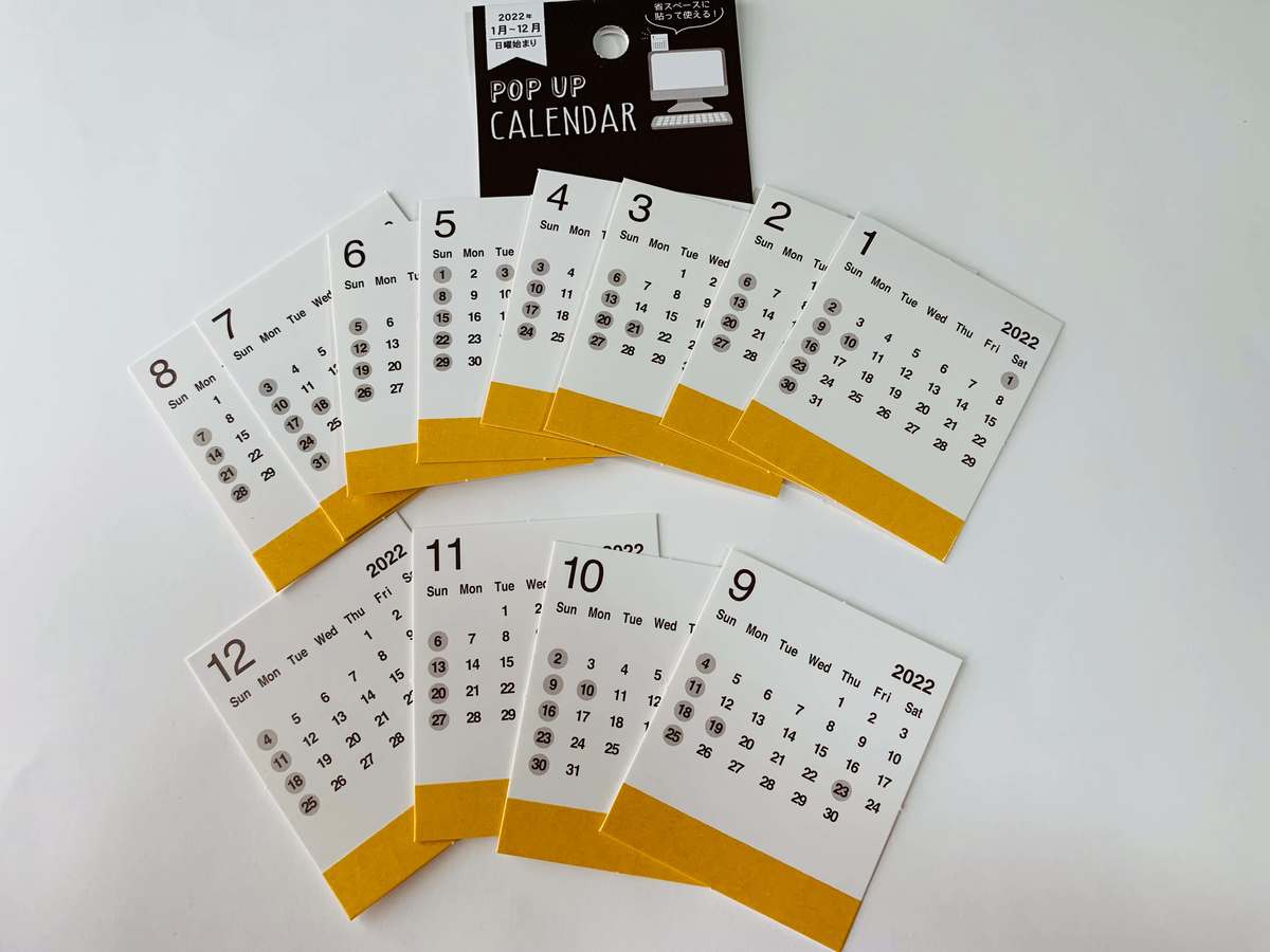 パソコンや固定電話などにピタッと貼れる“ミニカレンダー(110円 税込)”。目線をずらさず1ヶ月のカレンダーがすぐに確認できます。