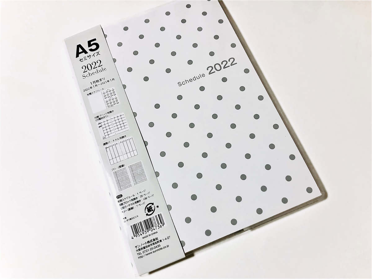 2022年 1月始まり“A5サイズスケジュール帳“