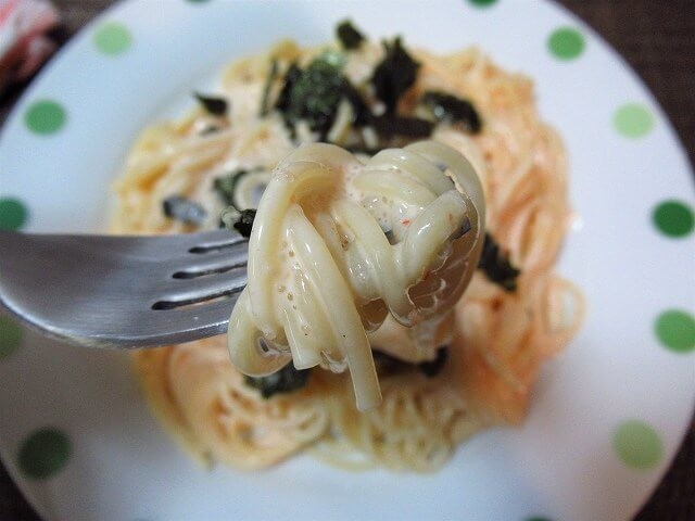 食べてみると、プリプリとした食感になっており、普通においしくできています。個人の感想ですが、お湯で茹でたパスタとほとんど変わりません。