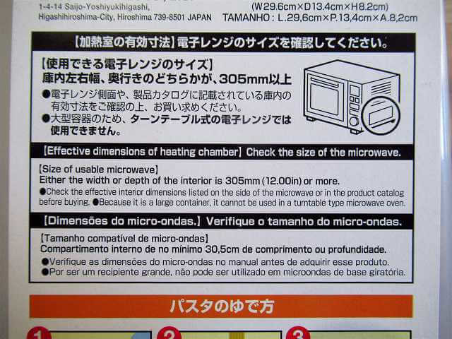 パケ裏情報をみると、使える電子レンジのサイズが決まっているとのこと。