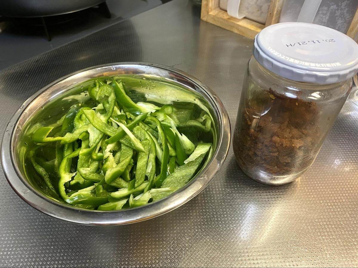 今回はチャーハンの素を細切りにしたピーマンと炒めた無限ピーマン風をご紹介します。