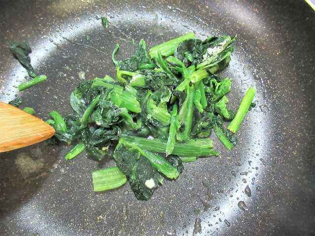 フライパンにバターを入れて溶かし、カットほうれん草を炒める