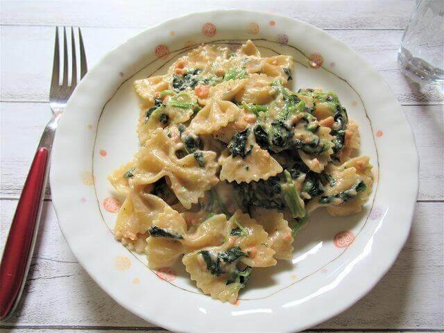 見た目はとてもかわいくていい感じです。パスタの種類が変わるだけでおしゃれなイタリアンのお店で出てくるような料理になるものですね(笑)