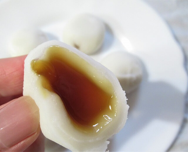 2時間解凍したものを食べてみると、弾力がある団子の中にみたらしダレがとろーんと出てきます。