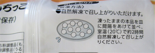 パッケージの裏には、食べる分だけお皿に出し、20℃の室温で2時間ほど自然解凍すると記載されています。