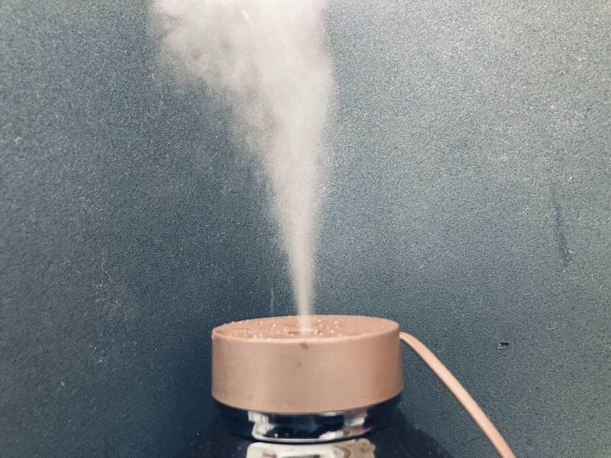 水を入れて差し込んでみると、ものすごい勢いでミストが噴出しました!こんなに出るとは驚きです!
