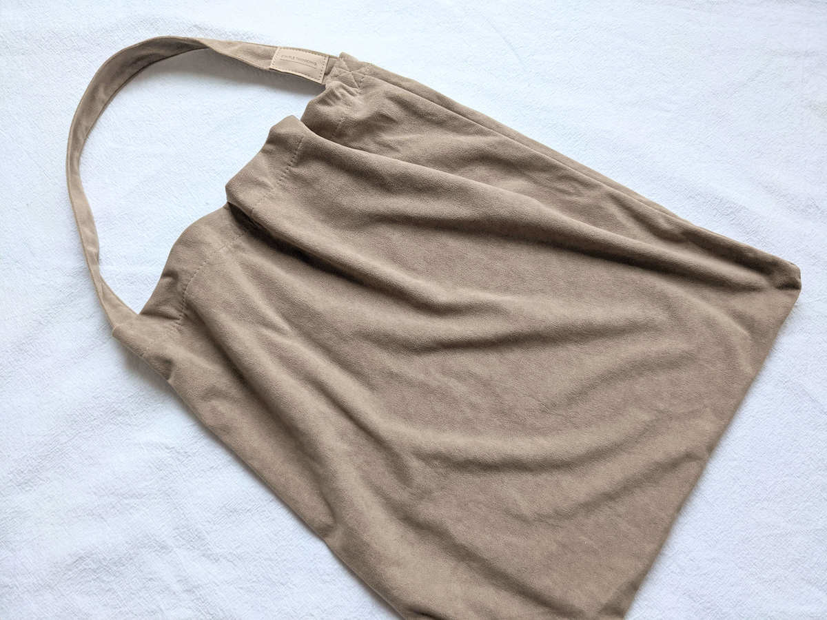 肩に掛けたときに、くたっとした感じがまた良いんです! 秋冬の洋服にも似合いますし、シーンを問わずラフに使えます。