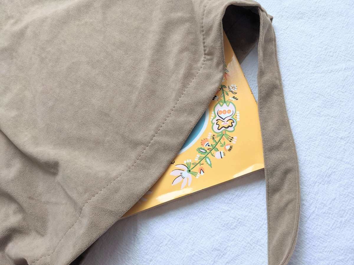 スリーコインズの新作「起毛ワンショルダーバッグ」です。 このバッグの魅力は、A4ではなく〝A3サイズ〟が入る大容量さ!