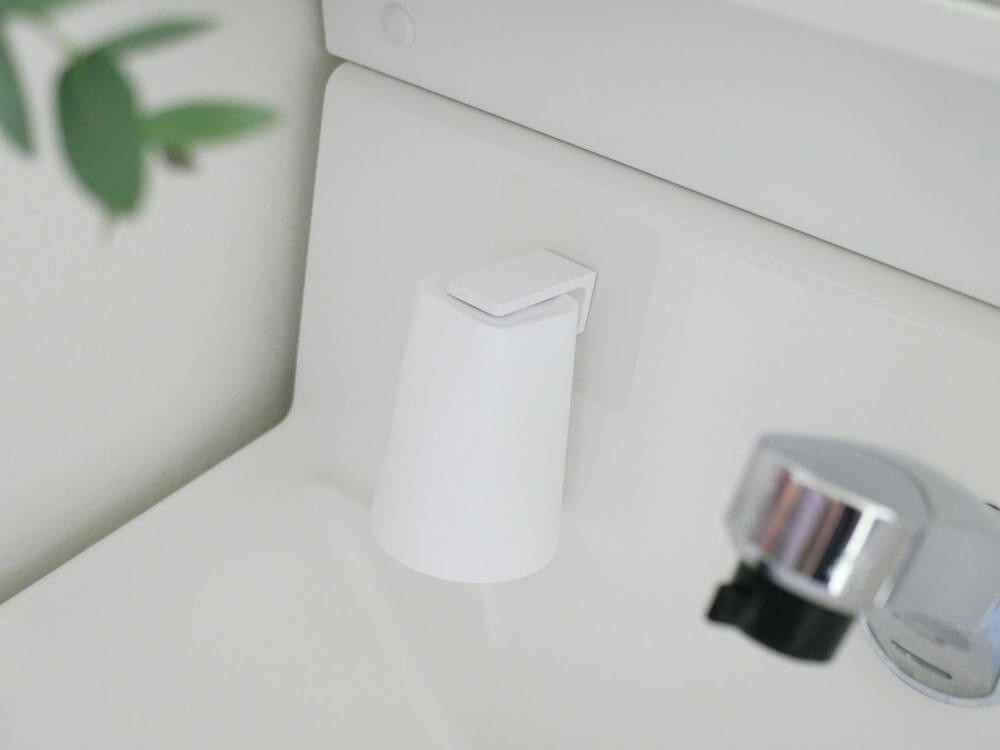 洗面台は、ご家族の物や細々とした物で溢れてしまいます。 そんな時、ぽっかり空いている洗面台の壁面に毎日使うコップを付けちゃえばOK。