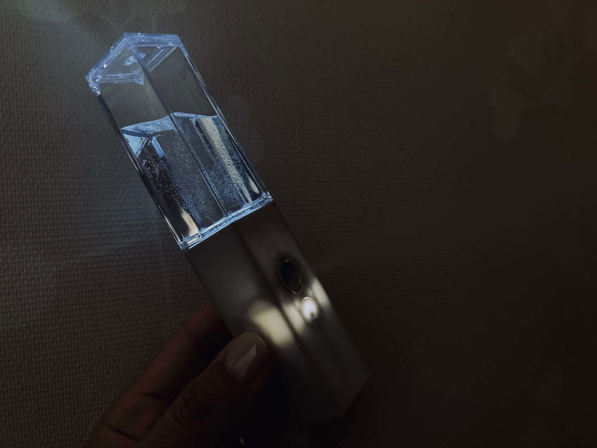 電源を入れてみると、880円の価格からは想像もつかないミストが出ました!使うときは15~20cmくらい離して使用してくださいね。