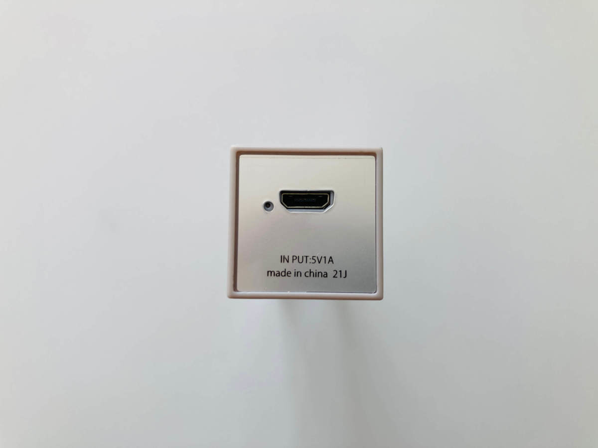 本体下の充電ポートにケーブルを差し込んで充電します。とってもシンプルな作りで分かりやすいですね。