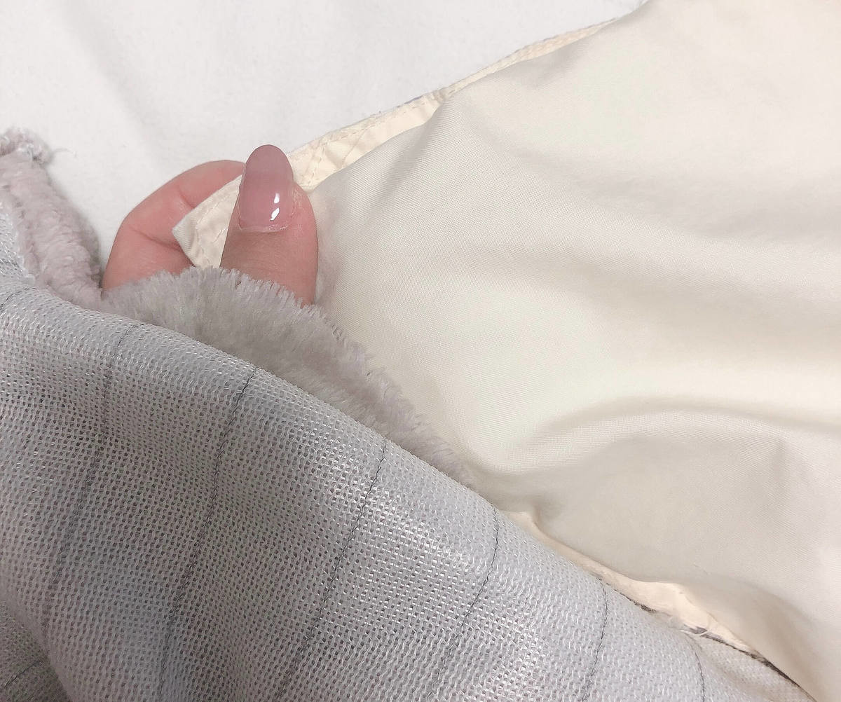 今回購入した商品は、内側と外側の生地感の違いがあります。内側の生地保湿・蓄熱効果などがあるため、カバーをかける際には内側と外側を間違えないようにかけてください。