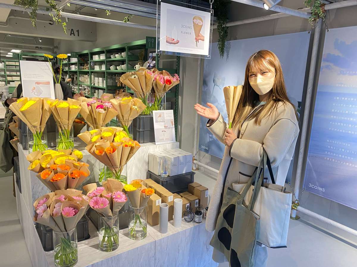 今までは観葉植物などの小ぶりの鉢植えも販売されていましたが、今回はなんと生花が登場!こちらは、表参道にあるDELIGENCE PARLOURのセレクトしたお花で、季節によって変わるそうです。