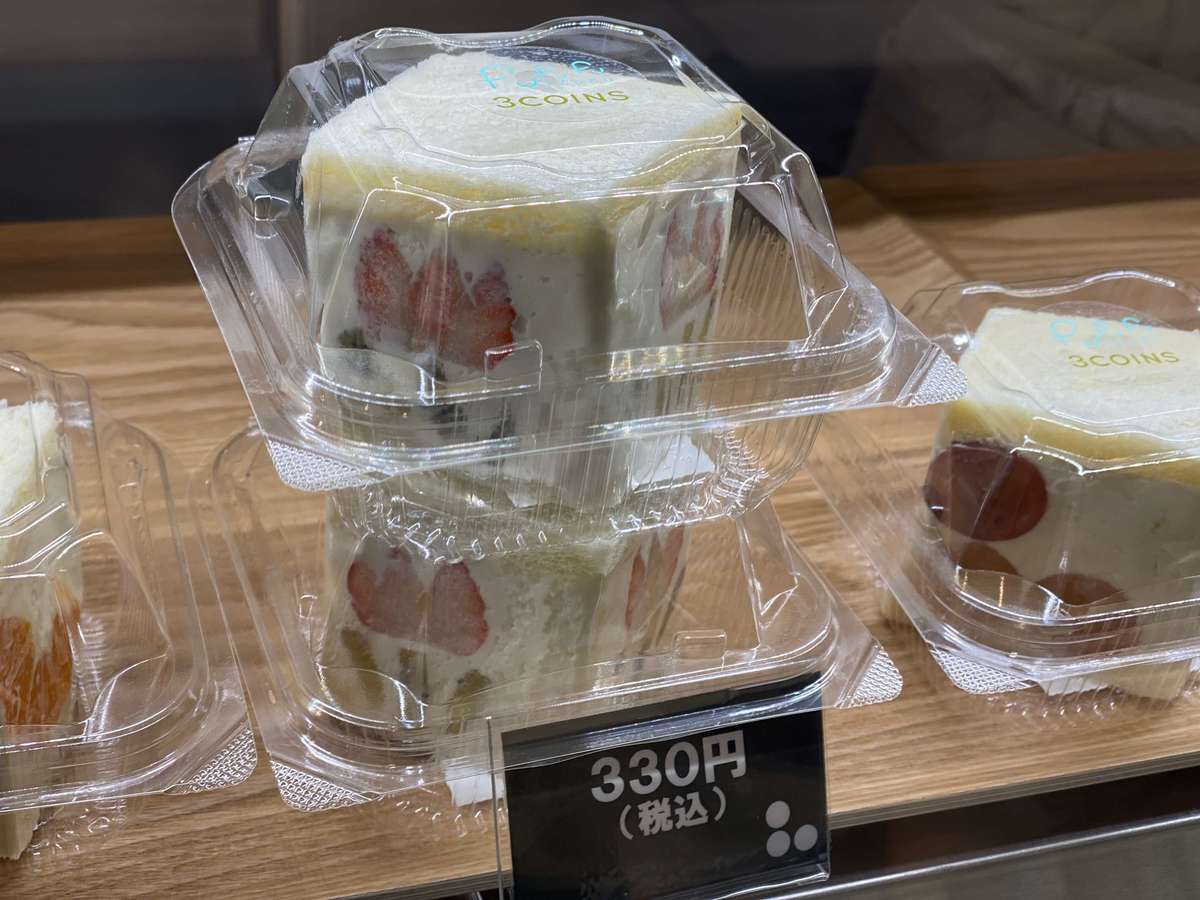 フルーツサンドといえば、ちょっと高級でなかなか食べる機会がなかったのですが、さすが3COINS!なんと330円でこんなに可愛らしいフルーツサンドが 買えちゃうんです。
