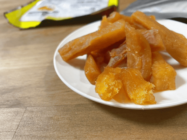 ほしいもにしては少し“しっとり”しています。やわらかめで記憶に残るほど香りは強くありません。